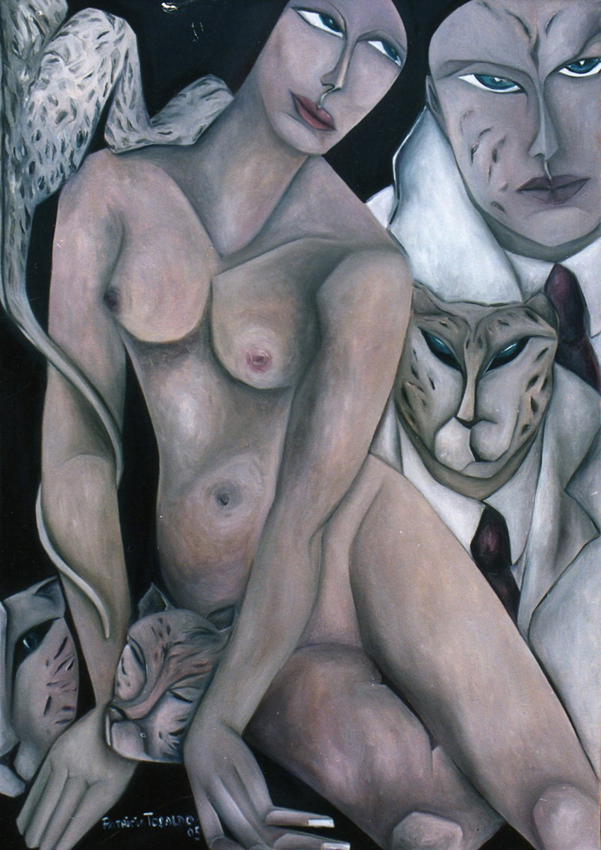 Mi mensaje embebido de íconos, símbolos, temores y curiosidad, pretende aproximarse a los fantasmas que pueblan el inconsciente humano y que se manifiestan bajo formas conscientes y voluntariamente metamorfoseadas; pues, la aventura humana es finalmente una comunión entre el instinto animal y la máquina, el mito y la realidad.