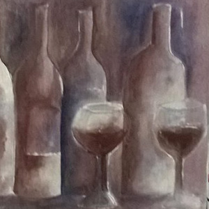 Colección de pinturas realizadas con vino. Las tonalidades de uvas que usé fueron “Cabernet Sauvignon” (tonos ocres) añejo, el “Malbec joven” (tonos violetas – azulados) y la “Bonarda.” (tonos rosados).